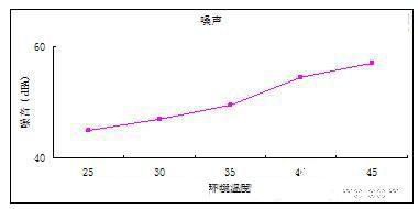 音頻噪聲污染主要控制方法是選用低噪音換熱單元,同時機柜采用消音措施。研究表明,換熱單元調(diào)速可有效的降低機柜噪音。圖5是某型戶外產(chǎn)品噪音水平與環(huán)境溫度關(guān)系曲線,從曲線可看出,采用調(diào)速后,隨著環(huán)境溫度減小,戶外柜噪音明顯降低。由于夜晚時環(huán)境溫度變低,因此采用該項技術(shù)的設備晚間有更低的噪音水平,非常符合實際應用環(huán)境的需要。