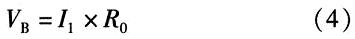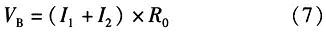 B點(diǎn)的電壓為電阻上的電壓,可由歐姆定理計算得到。計算溫度上升翻轉(zhuǎn)點(diǎn)TH,當(dāng)溫度上升時,由前分析可知,TSD為高電平,M2截止。因此流入R0的電流只有I1一路。此狀態(tài)下VB電壓的表達(dá)式為