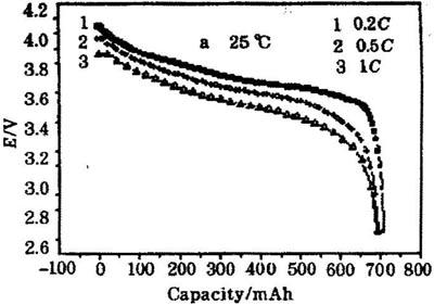 圖2700nAh鋰離子電池已不同速率放電時的放電曲。