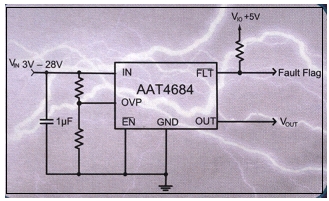 用AAT4684—3x2.75mml包裝提供高達(dá)28V的過電壓保護(hù)。其特征為:最高+28V的過電壓保護(hù);固定或可調(diào)節(jié)的過電壓保護(hù)閾值;3V欠壓鎖定閾值,即快速過電壓保護(hù)響應(yīng),過電壓瞬變值1μs(最大);低靜態(tài)電流,即常用-30μA與關(guān)機(jī)(禁用)時電流最大為1μA;常用100mΩ(最大為130mΩ)RDS(ON),電壓為4.5V;最大連續(xù)電流為1.8A;TSOPJW—12封裝。