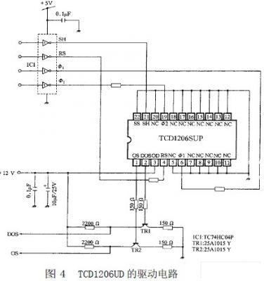 在1MHz 數(shù)據(jù)率情況下工作時,有效像元輸出時間為2.16ms,鋼絲繩直徑信號產(chǎn)生于2.16ms 期間。輸出信號的暗電平可控制在1.0V 左右。而高電平可接近10V,相差比較大。當光學(xué)系統(tǒng)調(diào)整得比較好時,圖像邊緣的信號比較陡,測量誤差較小。TCD1206UD 的工作原理和驅(qū)動電路如下: