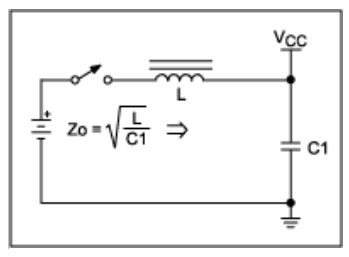 上述特征阻抗的計(jì)算可以從低阻L-C電路的能量(E)推導(dǎo)出來: