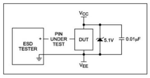 * 確定應(yīng)用場(chǎng)合的測(cè)試電壓(VESD),典型值為2kV的HBM或100V MM模式;