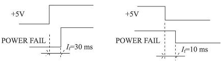 利用+ 5 V 及PF ( Power FAIL) 信號(hào)進(jìn)行比較, 在+ 5 V 掉電時(shí), PF 信號(hào)至少需維持10 ms 時(shí)間,以便存儲(chǔ)相關(guān)信息。欠壓保護(hù)電路如圖5 所示。