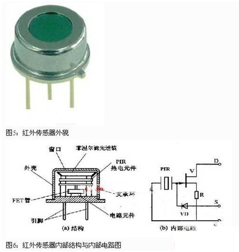 被動式紅外傳感器有三個關鍵性的元件:菲涅爾濾光透鏡,熱釋電紅外傳感器(PIR)和匹配低噪放大器。菲涅爾透鏡有兩個作用:一是聚焦作用,即將熱釋紅外信號折射在PIR上:二是將探測區(qū)內(nèi)分為若干個明區(qū)和暗區(qū),使進入探測區(qū)的移動物體(人)能以溫度變化的形式在PIR上產(chǎn)生變化的熱釋紅外信號。一般還會匹配低噪放大器,當探測器上的環(huán)境溫度上升,尤其是接近人體正常體溫(37℃)時,傳感器的靈敏度下降,經(jīng)由它對增益進行補償,增加其靈敏度。輸出信號可用來驅(qū)動電子開關,實現(xiàn)LED照明電路的開關控制。圖5是紅外傳感器外貌,圖6 是紅外傳感器內(nèi)部結構與內(nèi)部電路圖。圖7 是帶紅外傳感器的LED照明燈具,這是一款E27標準螺口燈頭的燈具,它的電源適用范圍是 AC180V-250V (50/60Hz), 紅外傳感器檢測范圍大約在3M—15M,它的標準產(chǎn)品 IFS-Bulb 3W燈具達80 lm ,5W燈具達140 lm 。在LED光源模塊的中央部分嵌入紅外線傳感器。一旦紅外傳感器檢測到人的體溫,LED電燈泡將會在50秒內(nèi)自動開啟與關閉。適用于任何一種室內(nèi)應用,如走廊、儲藏室、樓梯和大廳入口處。