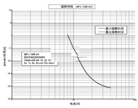 圖3 厚膜貼片式保險絲(印刷工藝)熔斷特性