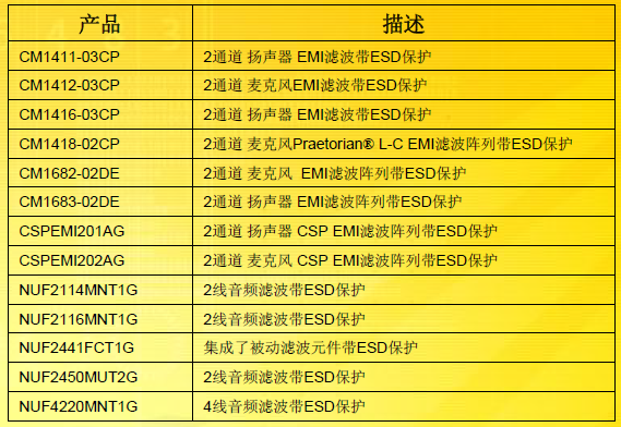 ONSEMI音頻信號濾波帶ESD保護