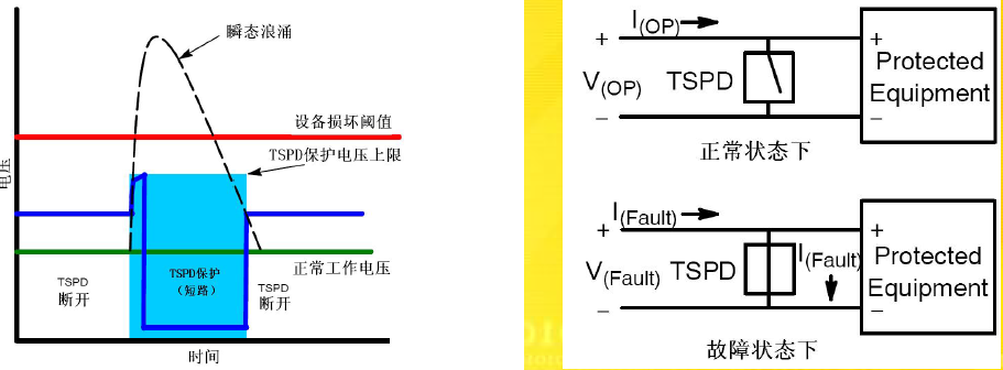 消弧保護器件:當(dāng)一個激勵觸發(fā)時,通常是產(chǎn)生一個短路通道來實現(xiàn)保護目的。如晶閘管浪涌保護器件TSPD