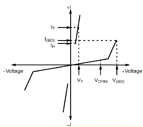 Point),如圖所示。如果受保護的電氣節(jié)點可以提供電壓和電流在保持點的水平,在電氣應(yīng)力消除后一個消弧保護器件也可能不會關(guān)閉。仔細(xì)選擇消弧保護器件是必須的,或者預(yù)先做好準(zhǔn)備,以保證在應(yīng)力消除時關(guān)閉保護和在正常操作期間不打開。