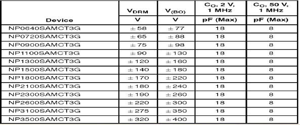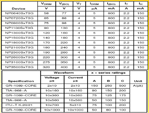 ONSEMI晶閘管浪涌保護器件NP系列