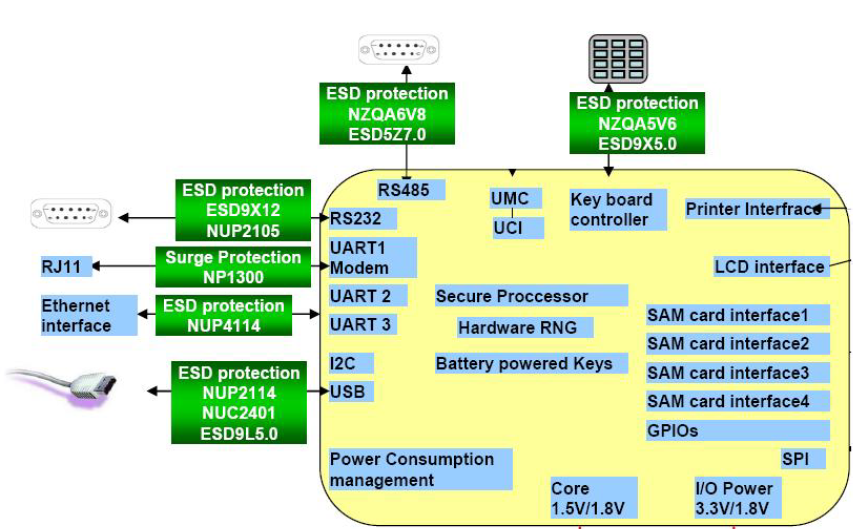 鉗位保護器件:當(dāng)一個激勵突發(fā)時,鉗制電位到一定值達(dá)到保護的目的;如TVS管