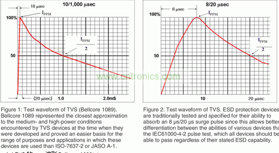 圖1:TVS的測(cè)試波形(Bellcore 1089) 圖2:TVS的波形