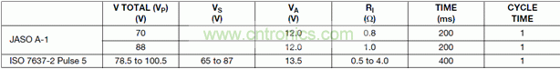 美國(guó)的ISO-7637-2 Pulse 5和日本的JASO A-1針對(duì)14V動(dòng)力總成的仿真條件如下表。