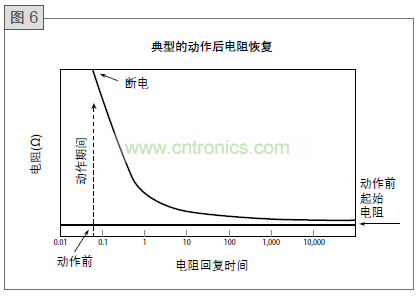 圖6顯示了動作和隨后允許冷卻的PolySwitch器件的典型行為。在此圖中,我們可以清楚地看到,即使在若干小時以后,器件電