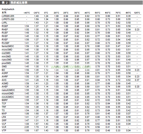 第2步:選擇能容納電路最大環(huán)境溫度和標準操作電流的PolySwitch器件