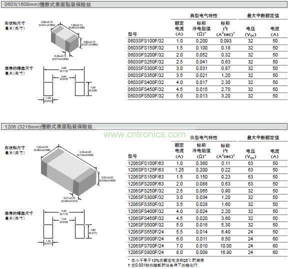 慢斷式保險絲的單片多層設(shè)計有助于以1206或0603尺寸提供多種大電流額定值,同時提高各種電路保護設(shè)計的高溫性能。其體積小、高可靠性和強大的電弧抑制特性適用于對電源保護、電容濾波器組、LCD(液晶顯示器)背光轉(zhuǎn)換器、電動機和便攜式電子產(chǎn)品提供過電流保護。