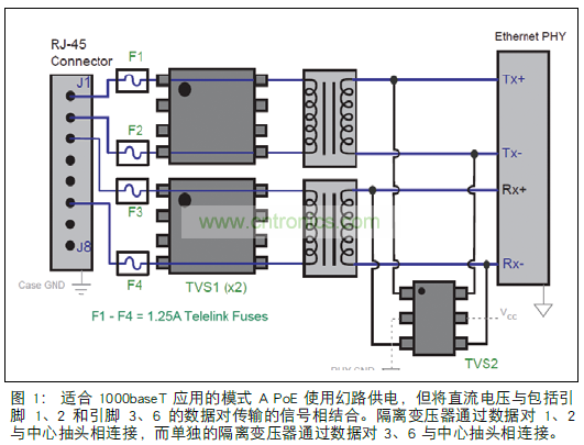 不采用縱向模式的方法可能只要求一個數(shù)據(jù)對安裝一根保險絲,適用于較低數(shù)據(jù)速率的以太網,例如 10BaseT。 對于 100 和 1000BaseT 系統(tǒng),謹慎起見,將相同的保險絲組件置于數(shù)據(jù)對的兩個引腳中,以保護回路平衡。