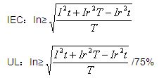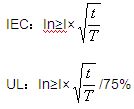 如果保險絲通以一定的電流(Ix)可以永久工作,那么此時保險絲的聚熱與散熱一定處于平衡狀態(tài),此時保險絲的散熱功率為Ix2T。如果尖峰電流產生的能量≤Ix2T,可以認為尖峰電流產生的能量不可能使保險絲的溫升大于Ix時的溫升。對于滿足不同的安規(guī)體系,Ix的數(shù)值有所區(qū)別,IEC體系下可以認為等于In;UL體系下可以認為等于75%In。
