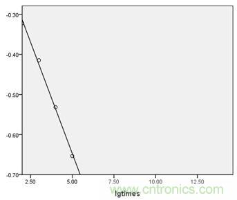2.2 如果要達到2萬小時的壽命,保險絲需要經受近100億次的沖擊,而此數(shù)據(jù)很難利用實驗數(shù)據(jù)達到,所以在此根據(jù)已有的信息作趨勢分析。分析步驟如下: