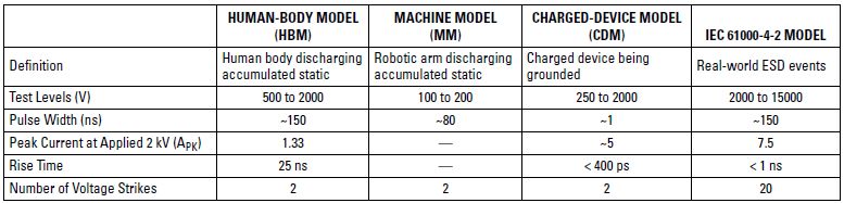 器件級(jí)模型和系統(tǒng)級(jí)模型有一些明顯的區(qū)別,表 2 列出了這些區(qū)別。表 2 中最后三個(gè)參數(shù)(電流、上升時(shí)間和電擊次數(shù))需特別注意: