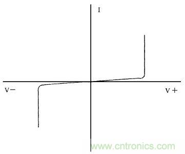 從圖1中便可反應出壓敏電阻的伏安特性曲線來, 基本特性如一對性能相同的同極性串聯(lián)的穩(wěn)壓二極管。