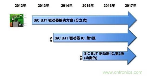 飛兆針對SiC BJT產(chǎn)品已經(jīng)有了一個完整的產(chǎn)品路線圖?,F(xiàn)在飛兆SiC BJT解決方案驅(qū)動部分還是分立式的,下一步我們首先開發(fā)SiC BJT驅(qū)動IC。SiC BJT驅(qū)動器和其他以往同類器件有很大的不同,由于通過電流很大需要特需驅(qū)動IC,所以飛兆有必要開發(fā)出專屬IC,防止EMC干擾。” 藍(lán)建銅說。