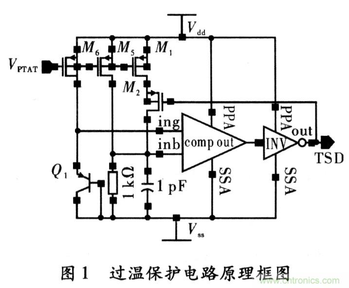 設(shè)計的過熱保護電路大體上分為3個部分,如圖3所示。