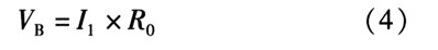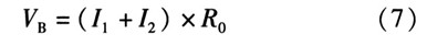 B點的電壓為電阻上的電壓,可由歐姆定理計算得到。計算溫度上升翻轉(zhuǎn)點TH,當(dāng)溫度上升時,由前分析可知,TSD為高電平,M2截止。因此流入R0的電流只有I1一路。此狀態(tài)下VB電壓的表達式為