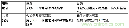 表.1 手機(jī)電路塊中各電感器的用途例