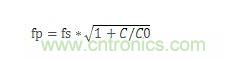 當(dāng)頻率繼續(xù)提高,高于fs時,LCR支路呈感性,這樣和C0產(chǎn)生并聯(lián)諧振,并聯(lián)諧振頻率fp,其計算公式為: