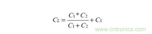 圖示的C1,C2就是為晶振工作在并聯(lián)諧振狀態(tài)下得到加載電容CL的電容。關(guān)于最優(yōu)的加載電容CL的計算公式為: