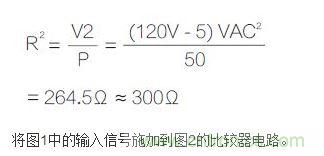 圖2給出了用于風(fēng)扇控制的典型測溫電橋電路。電阻R2(50W、300Ω)由下式確定,它將影響輸入信號。