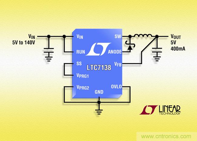 【導讀】近日,凌力爾特公司宣布推出 擁有140V 輸入的高效率降壓型轉換器 LTC7138,該器件提供高達 400mA 連續(xù)輸出電流,靜態(tài)電流僅為 12µA 的 140V、400mA 。LTC7138 在 4V 至 140V 輸入電壓范圍內(nèi)工作,因此非十分適合電信、汽車、航空電子和工業(yè)等多種應用。
