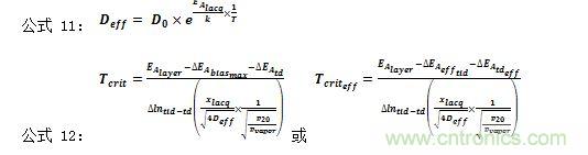 公式11和公式12描述了估算擴(kuò)散Deff 的系數(shù),以及臨界溫度相關(guān)涂漆或塑模系統(tǒng)的Tcrit 或 Tcrit eff。