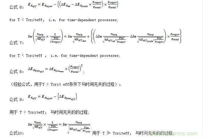 · 明確的ln√t – 1 / T框圖包含了全部信息,使我們能夠計(jì)算文中討論的塑模/漆,以及功能層上所有相關(guān)材料的數(shù)據(jù)(活化能,濕度有關(guān)的材料特性,偏置電壓加速效應(yīng)等)。