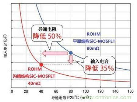 圖5. 溝槽結(jié)構(gòu)SiC-MOSFET的導通電阻、輸入電容特性