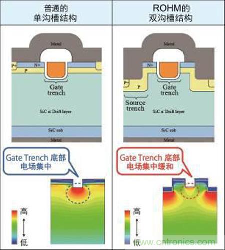 圖6. ROHM的溝槽結(jié)構(gòu)SiC-MOSFET元件結(jié)構(gòu)