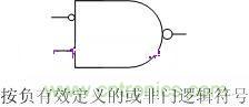 上述圖中畫的邏輯器件符號均是正邏輯下的輸入、輸出關(guān)系,即對“1”(高電平)有效而言。而單片機中的多數(shù)控制信號是按照負(fù)有效(低電平有效)定義的。例如片選信號CS(Chip Select),指該信號為“0”時具有字符標(biāo)明的意義,即該信號為“0”表示該芯片被選中。因此,“或非”門的邏輯符號也可以畫成下圖。