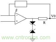 (3)輸出保護(hù)。當(dāng)集成運(yùn)放過(guò)載或輸出端短路時(shí),若沒(méi)有保護(hù)電路,該運(yùn)放就會(huì)損壞。但有些集成運(yùn)放內(nèi)部設(shè)置了限流保護(hù)或短路保護(hù),使用這些器件就不需再加輸出保護(hù)。對(duì)于內(nèi)部沒(méi)有限流或短路保護(hù)的集成運(yùn)放,可以采用下圖所示的輸出保護(hù)電路。在下圖電路中,當(dāng)輸出保護(hù)時(shí),由電阻R起限流保護(hù)作用。