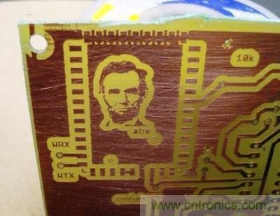 會(huì)把美國總統(tǒng)林肯(Abraham Lincoln)頭像放進(jìn)電路板設(shè)計(jì),作者或許是有他個(gè)人的理由…又或許是剛好那樣的功能繞線就是需要畫出類似林肯的頭像才能完成?有關(guān)這款電路板作品的信息不多,而且信息顯示它被貼上網(wǎng)的時(shí)間是2010年,作者不可考…但它確實(shí)很酷吧?