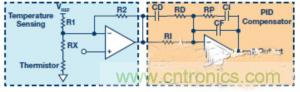 圖8.使用ADN8834內(nèi)部兩個斬波放大器的熱反饋環(huán)路圖