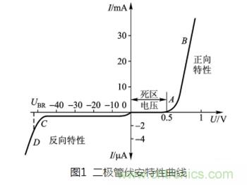 提到二極管,大家最熟悉的就是二極管的單向?qū)щ娦?,反映伏安曲線上如圖1所示。當正向偏壓U=0.5V(硅管)時,二極管開始導通,電流越大電壓越大,具有很低阻抗;當加反向偏壓時二極管不導通,在一定范圍內(nèi)有很小的漏電流,具有很大阻抗。其這個單向?qū)щ娦?,也起到了開關的作用,所以在整流和開關方面都有廣泛的應用。