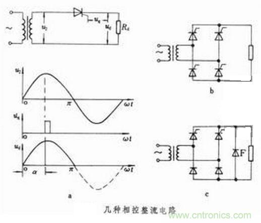 采用相位控制方式以實(shí)現(xiàn)負(fù)載端直流電能控制的可控整流電路??煽厥且?yàn)檎髟褂镁哂锌刂乒δ艿木чl管。在這種電路中,只要適當(dāng)控制晶閘管觸發(fā)導(dǎo)通瞬間的相位角,就能夠控制直流負(fù)載電壓的平均值。故稱為相控。