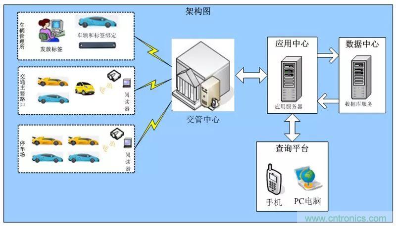 正是由于電子車牌相比傳統(tǒng)車牌有這么多的優(yōu)勢和特點,可以預見在不久的將來,機動車輛將會逐步使用帶有電子標簽的電子車牌替代目前的傳統(tǒng)車牌,這樣一來,從車輛前端的電子車牌,到后端的車牌識別、數(shù)據(jù)傳輸、車輛管理、數(shù)據(jù)存儲、終端查詢等整個平臺的構建和發(fā)展前景都是十分廣闊的,圖2是整個平臺組成架構的示意圖。