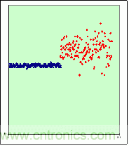 因?yàn)閲?guó)內(nèi)電網(wǎng)質(zhì)量不一,在一些質(zhì)量差的地區(qū),容易影響電磁爐觸摸按鍵的正常工作。如果不能做電源隔離,就會(huì)看到一下圖6的差別(藍(lán)色表示無按鍵,紅色表示鍵被按下),而這些圖還只是在電磁爐沒有開功率的情況下的,當(dāng)電磁爐工作時(shí)產(chǎn)生的電磁輻射將會(huì)使看到的信號(hào)更加雜亂無章。在實(shí)驗(yàn)中發(fā)現(xiàn),采用與外界電網(wǎng)隔離或使用軟件濾波,按鍵效果都能得到明顯改善。