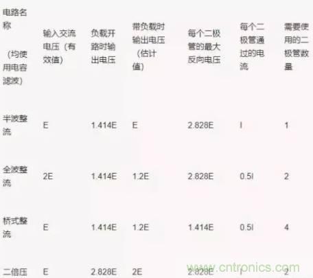 (1)常用整流電路性能對照