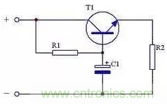 圖22中,C1可選擇幾十微法到幾百微法;R1可選擇幾百歐到幾千歐,具體取值可根據(jù)T1的β值確定,β值高,R可取值稍大,只要保證T1的集電極-發(fā)射極電壓(UCE)大于1.5V即可。T1選擇時要注意耗散功率PCM必須大于UCEI,如果工作時發(fā)熱較大則需要增加散熱片。