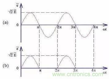 由于半波整流電路只利用電源的正半周,電源的利用效率非常低,所以半波整流電路僅在高電壓、小電流等少數(shù)情況下使用,一般電源電路中很少使用。
