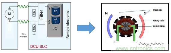 電機(jī)有磁極、轉(zhuǎn)子線圈、換向器組成。根據(jù)右手定律轉(zhuǎn)子線圈通電后再磁極磁場(chǎng)的作用下產(chǎn)生運(yùn)動(dòng)。運(yùn)動(dòng)到磁場(chǎng)邊緣是磁場(chǎng)變?nèi)?,電?dòng)勢(shì)減小,電流增大。換向器改變轉(zhuǎn)子線圈的電流方向,重新進(jìn)入磁場(chǎng)電動(dòng)勢(shì)增大,電流減小。轉(zhuǎn)子線圈不斷轉(zhuǎn)動(dòng)、電動(dòng)勢(shì)和電流不斷變化,從而紋波不斷產(chǎn)生。所以紋波是電機(jī)的固有特性,通過計(jì)算紋波的個(gè)數(shù)就能計(jì)算出轉(zhuǎn)子換向的次數(shù),就能計(jì)算出窗戶的相對(duì)位置,結(jié)合時(shí)間就能得出電機(jī)的轉(zhuǎn)速。