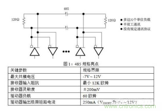 3.過程控制設計舉例為了獲得更多485系統(tǒng)設計知識,一個比較好的方法是看具體的例子??紤]這樣一個系統(tǒng):系統(tǒng)容量為1個主控制器、數(shù)個分站的工廠自動化系統(tǒng),每個分站都可以發(fā)送和接收數(shù)據(jù)。系統(tǒng)特性如下所示,通用規(guī)格見圖10。· 最遠分站距主控制器500米· 31臺分站(加上主機共32臺設備)· 信號傳輸速率為500 kbit/s